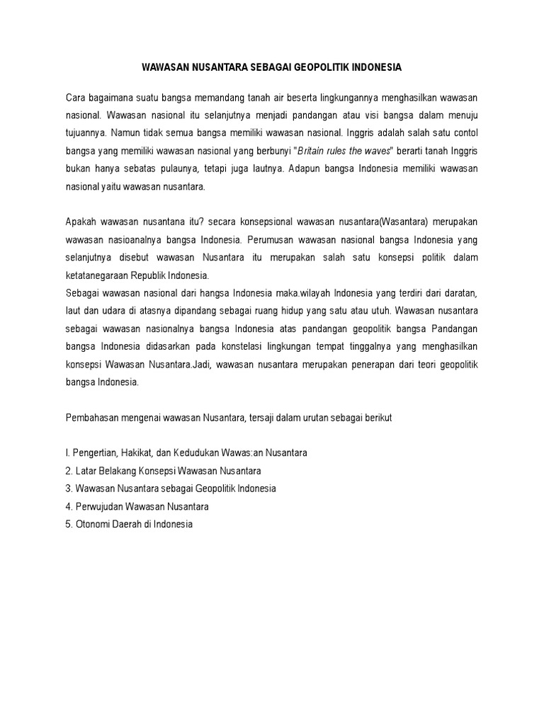 Wawasan Nusantara Sebagai Geopolitik Indonesia from image.slidesharecdn.com Maybe you would like to learn more about one of these? Sebagai salah satu konsepsi ketatanegaraan republik indonesia. Check spelling or type a new query. We did not find results for: